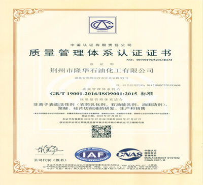 荊州市隆華石油化工有限公司是由原湖北省沙市石油化工廠(成立于1966年)改制后組建的有限責(zé)任公司,原湖北省沙市石油化工廠是原國家化工部、石油部定點(diǎn)生產(chǎn)農(nóng)藥乳化劑、原油破乳劑專業(yè)廠家之一,改制后新公司注冊(cè)資金7000萬人民幣。公司位于三國故里,荊州市經(jīng)濟(jì)技術(shù)開發(fā)區(qū)。荊州沙市機(jī)場(chǎng)便捷快達(dá),漢宜高鐵比鄰而過,黃金水道長江相伴!